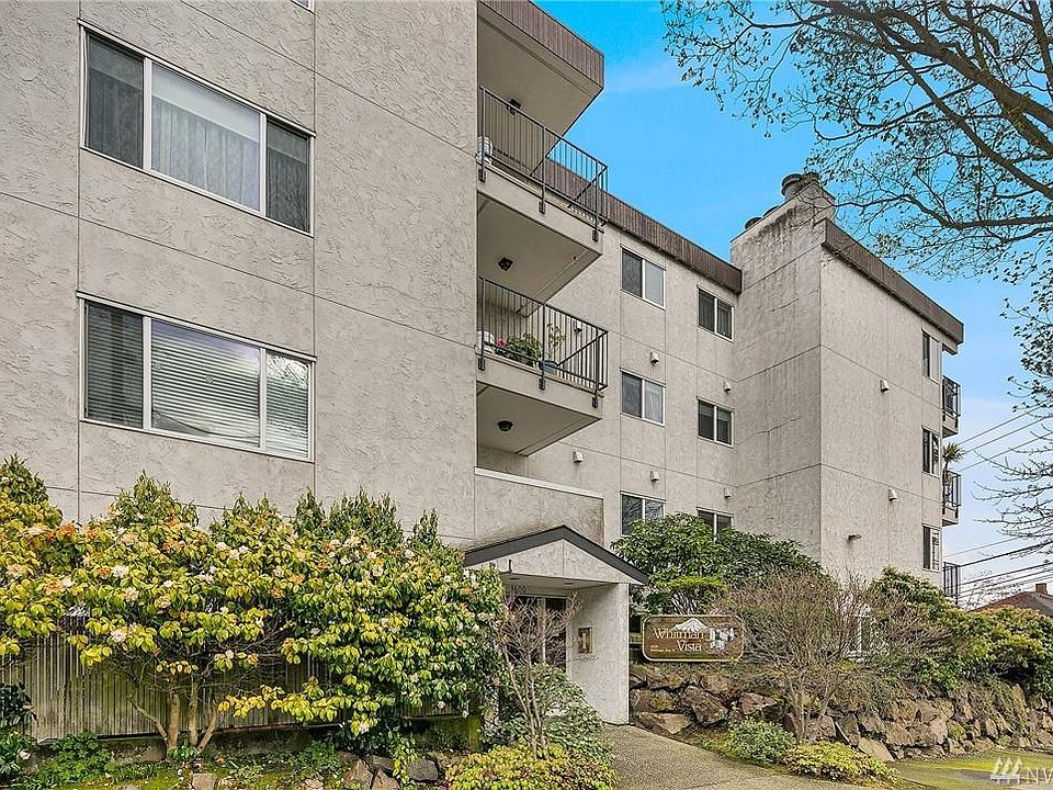 Awesome 2 bed/1.75 ba FREMONT condo for sale in Whitman Vista building. South-facing unit has lots of natural light and nice views of the lake, Mt Rainier and downtown Seattle. 1 block from famous Fremont Troll, close to Fremont restaurants & shops! Brand new bamboo floors, water heater and garbage disposal, plus freshly painted. Large living room with fireplace opens to private outdoor patio. First floor secured entry. One underground parking spot & storage unit. Close to downtown, hwy 99, I-5. Contact us for a private tour: Gerald 206-383-1207 *Offers will be reviewed May 8th.*