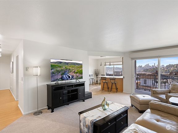 Dreamy city living with views! From secure lobby or parking, take the elevator to this corner unit with fabulous balcony facing downtown Seattle and Lake Union! Classy updated kitchen opens to beautiful built-in bar, perfectly situated next to large dining window. Spacious living area w/ elegant fireplace. Down hall is laundry, storage, and full bath. First bedroom has custom closet and murphy bed. Primary bed w/ ensuite also has custom closets and tastefully designed cabinets w/ updated shower, dual sinks and more! Custom blinds. Well run HOA. Multiple storage spaces. This Fremont location brings the fun of the city, quick access to the lakes, downtown, bike trail, shops/restaurants while offering dazzling tranquility.
