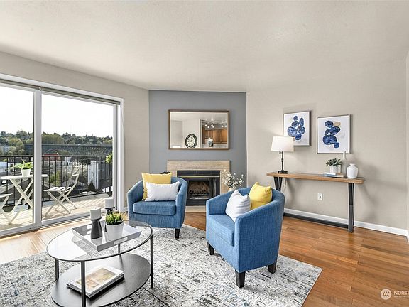 Unbeatable location with million-dollar views, a perfect sanctuary! This top-floor unit was thoughtfully positioned w/southern exposure to maximize natural light & capture the unobstructed views of Lake Union, Mt. Rainier,& Seattle's skyline. Enjoy the sun & breathtaking views and fireworks from every rm & your private balcony. Enjoy the cozy living room w/a wood-burning fireplace during the winter months & host dinner parties in your spacious DR.Features are an in-unit washer & dryer for your convenience, storage space on the 4th floor, and a secured garage w/ assigned parking. Owning a car would be optional! Steps away from vibrant Fremont,Lake Union,Burke Gilman Trail, Gas Works Park, Brewery,coffee shops, PCC,&tech giants.Pre-Inspected.