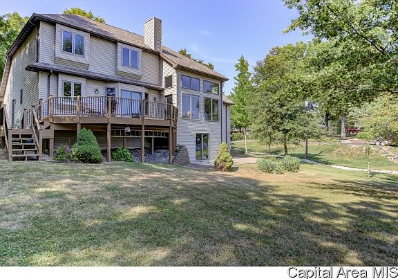 Contemporary style four bedroom home on Bertinetti Lake. Master suite on main floor. Whirlpool tub with separate shower in master bath. Stone front woodburning fireplace in living room. Geothermal heat. 1/2 bath on main floor. Unfinished walkout basement has unlimited potential for living and/or storage. Large deck great for entertaining or just enjoying the view. Home custom built by Tad Craggs. All electric, but there is a gas line up to the west side of the home.