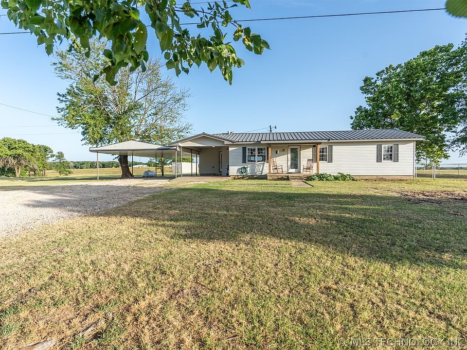 Check out this MOVE-IN READY-3 bedroom 2 bath home situated on a prime 10 acres m/l. The property is located on the corner of two county-maintained gravel roads. The acreage is mostly clear and flat with some mature trees, would make excellent pasture for livestock, hay meadow, or gardening. This property is very well-maintained and home was renovated in 2018. In 2018 the owner updated the following items: HVAC system, PEX plumbing, electrical, interior paint, appliances, and flooring. In addition a new septic was installed in 2020. Water well pump, plumbing, and pressure tank all new in 2022. The property has a underground storm cellar conveniently located outside the back patio door. The home is supplied by an excellent water well and Canadian Valley Electric. Propane is available and is used for a back-up wall heater. The covered back patio is ideal for porch setting with a fully-fenced backyard. The large carport can accommodate several vehicles and shipping container provides quite a bit of storage. Conveniently located approximately 30 miles to Shawnee, 60 miles to Oklahoma City, 65 miles to Tulsa. Easy access to Hwy 62, and Interstate 40, and Turner Turnpike. Call for a showing today!