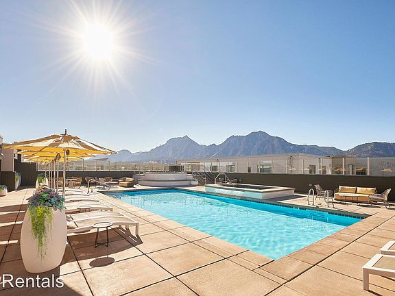 2 Bed 2 Bath Penthouse Level Loft In The Peloton! Amazing Amenities! - Video of condo - Best complex in town! Year round heated roof top pool, hot tubs, fire pit, and grill. Community center includes 24 hour gym with tv's and all the channels as well as a spin room. Second floor has free wi-fi throughout, huge office/study room, tv's, double sided fireplace, move theater (watch movies or tv!), shuffle board, pool, and ping pong. The complex also has Basta (Italian restaurant) and Naked Lunch (coffee, snakes, great sandwiches, and beer). Walk into this condo and you are greeted with a large office space tucked away from the rest of the condo. there is also the large laundry/storage room. Down the hall opens up to the updated kitchen with stainless steel appliances (gas), granite countertops, plenty of cabinet/counter space, and a breakfast bar. The kitchen overlooks the open dining/living room with track lighting, gas fireplace, and a spacious balcony with mountain views. Master bedroom has a massive custom walk in closet and a 5 piece master bathroom. Second bedroom also has a smaller custom walk in closet, new carpet, and a full bathroom right outside (off living room). Water/Sewer & Trash/Recycling/Compost included in rent. Trash shoot on every floor! Common bike room for extra bike storage! Best complex in Boulder! A dog is negotiable with extra deposit. Call or email to set up a showing. No Cats Allowed (RLNE2146281)