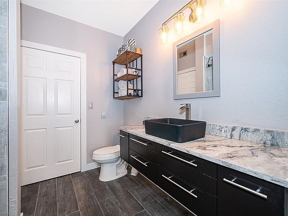 This gorgeous single story property completed its full renovation, one year ago. With raised ceiling and custom lighting the space feels much larger then it is. The enclosed patio provides indoor / outdoor living and can be utilized as an extension of the living area. Restoration Hardware light fixtures were added to create a light, bright haven. New custom kitchen cabinets have soft close doors and drawers. White oak organizing inserts and internal pull out shelves, maximize space. Waterfall Quartz Counters in the kitchen & quartz bathroom counter.