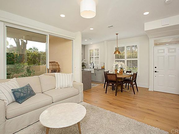 Experience an actual "Turn Key" home. This beauty can be sold furnished. Perfect for first time home buyers, students, executives or Track & Race enthusiasts. This gorgeous single story property completed its full renovation, one year ago. With raised ceiling and custom lighting the space feels much larger then it is. The enclosed patio provides indoor / outdoor living and can be utilized as an extension of the living area. Restoration Hardware light fixtures were added to create a light, bright haven. New custom kitchen cabinets have soft close doors and drawers. White oak organizing inserts and internal pull out shelves, maximize space. Waterfall Quartz Counters in the kitchen & quartz bathroom counter. A Farmhouse sink compliments those beautiful counters and has a larger & small faucets, the smaller for filtered water. New Stainless Steel Thermador, Bosch and Bertazzoni appliances will wow you with their capabilities. All rooms have new wide plank, REAL hardwood floors, except the bathroom with hip, matte black tile in a Chevron pattern. Enjoy the new side by side Electrolux washer and dryer. Workout in Martinique's large private gym and beautiful pool and spa. This quiet, end unit is across the street from Solana Highlands Park and within walking distance to: One Paseo Shopping, Del Mar Highland Town Center and Solana Highlands Elementary. Equity growth is aided by A+ ratings for Solana Highlands Elementary, Carmel Valley Middle & Torrey Pines High. Welcome Home!