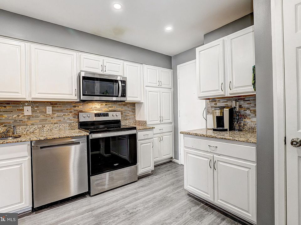 Rarely available corner unit in the sought-after Upper Park Heights community! This beautifully updated and impeccably maintained condo offers an open, light-filled layout with floor-to-ceiling windows, recessed lighting, and luxury vinyl plank flooring throughout. The gourmet kitchen is equipped with stainless steel appliances, granite countertops, a mosaic tile backsplash, and abundant cabinet and pantry space. A custom built-in buffet with pendant lighting adds elegance to the dining area. The spacious primary suite features an en suite bath, a dressing area with vanity, and a generous walk-in closet. The second bedroom offers ample closet space and is complemented by a modern full bath with both a stall shower and soaking tub. A versatile bonus room provides the perfect space for a home office, den, or guest room. Enjoy sweeping skyline views of Baltimore from the private balcony. Two assigned garage spaces and all utilities are included in the condo fee. Building amenities include business and event rooms, doorman, concierge, and secure entry. A rare opportunity to experience stylish, maintenance-free living in an ideal location!