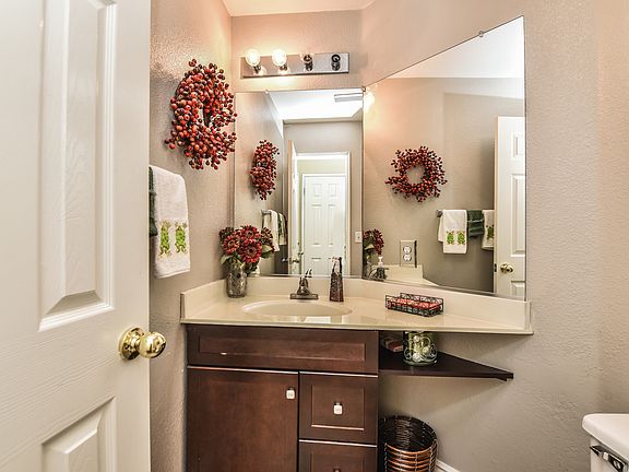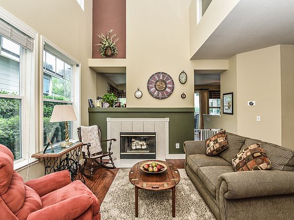 Stunning condo tucked away at the rear of the complex backing to HOA open space with views of hills & city lights! Beautifully updated with extra thick baseboards, decorator paint colors, laminate wood floors thru out 1st level. Updated kit offers solid surface counters & new stainless appliances! Cozy two-way fireplace in family room & living room. Spacious master bedroom offers magnificent views. Large updated master bathroom. Relax on the trellis covered rear deck & enjoy the views!