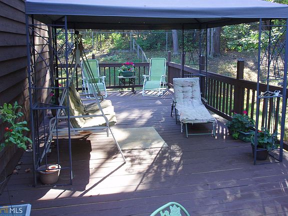 Comfy cabin in the woods with an abundance of outdoor living space on the side deck and covered front porch.The interior has lots of wood and exposed beams on the vaulted ceiling.There is a two car garage next to another garage that can be used for a shop or storage for another vehicle. There is a parking area for an RV at the bottom of the driveway. There are no covenants or restrictions on this property.Convenient to Helen,Cleveland,and Clarkesville.