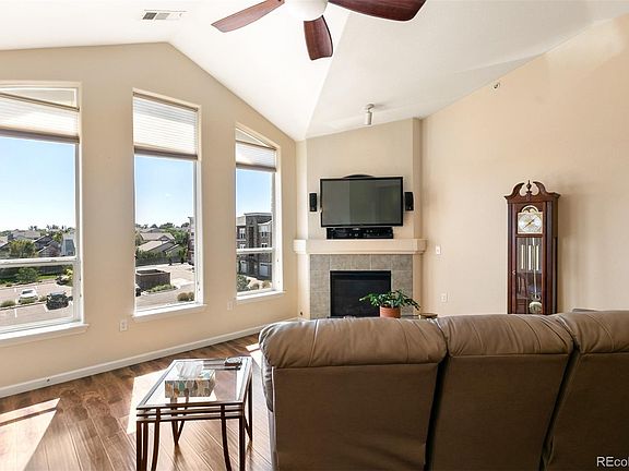 Care-free living awaits you in this spacious 2-bed, 2-bath Thornton lock and leave condo. Your new home features vaulted ceilings, beautiful hardwood floors, 2 balconies, gas fireplace, and open floorplan. There will be no need to worry about stairs to get to this penthouse--the secured building features an elevator along with underground parking garage. Spacious master features plantation shutters, walk-in closet, and 5-piece bath. Food prep in the kitchen is easy with lots of Corian counterspace. Additional features include a large secondary bedroom with walk-in closet, along with a large laundry room (washer/dryer stay!). The new carpet, newer flooring, furnace, A/C, and water heater means all you need to do is move in. Ideal location near the new north light rail. Show today!