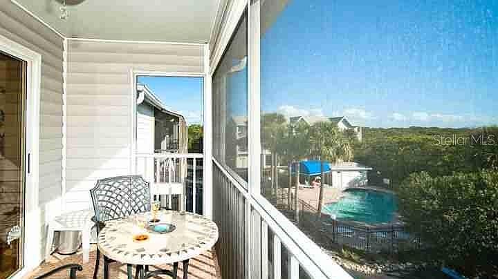 You will feel cocooned away from the hustle and bustle of the world when you're in this comfortable 2BR/2BA elevated condo yet still be close to what makes Anna Maria Island special. The sugar sands on the Gulf of Mexico! The Cove at Sandy Point has a unique wooden bridge connecting residents and visitors to this private collection of villas that border the Grassy Point, a 50+ acre preserve. Get to know your neighbors at the large lagoon-shaped heated pool which is surrounded by more mangroves and mature trees offering shade and privacy in addition to Florida's famous sunshine - remember the sunscreen! Light and bright décor is part of the sale as well as all appliances, including washer and dryer. If you're purchasing this as a vacation rental investment then you're basically ready to roll! Weekly rentals are allowed and so is one friend under 30 lbs. A screened lanai off the living and dining rooms overlook the preserve with peeks of the pool, perfect for winding down or bird watching. No elevator (get your steps in every day!). Two covered parking spots are below plus beach toy storage, an outdoor shower for rinsing off beach sand, and a bathroom poolside. This condo area is so quiet you'll practically forget that Publix, CVS, and trolly stops are just across East Bay Dr. Beach access is close enough to walk but you can ride your bike or take a golf cart ride down the street if you are reading a heavy book.