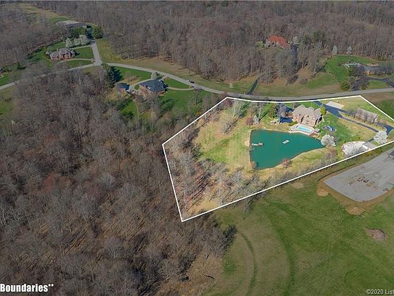 PRIVATE PARADISE in Floyds Knobs! This stunning home is ideal for nature enthusiasts, garage lovers & those looking for recreational bliss. This executive home is perfectly situated on 6.4 Acres in Eagles Trace neighborhood allowing for optimal privacy. Enjoy a staycation with 5600+ finished square feet of living space, two detached garages, an acre stocked lake, 20x40 heated inground pool, pool pavilion, pool bath & outdoor gazebo. The main living level features a private balcony off of the Master, large picture windows with scenic views of outdoor splendor & an excellent floor plan defined by the perfect combination of luxury & down-to-earth comfort. The remodeled kitchen with gorgeous cabinetry & granite counters has an adjoining Hearth area family room. Keep your loved ones close with a full in-law quarters including 2nd Master Suite, full kitchen, family room, sun room with fireplace & additional bedrooms. There are many versatile rooms throughout. Sellers have excellent records of upgrades & maintenance performed throughout their ownership including the geothermal heating & cooling system installed in 2011, roof & replacement windows. Garage parking will accommodate 9+ cars. The 30x60 Pull through garage is heated, has its own 1/2 bath, 10 ft overhead doors & a second level for storage. The 34x22 three car garage is available for your overflow. This property is truly a dream! Schedule a private tour today!