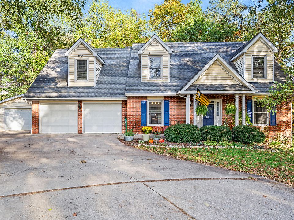 Charming Cape Cod on a quiet cul-de-sac in West Creek Subdivision! This 5-bedroom, 3 full bath, 2 half bath home offers 3,003 sq. ft. of living space. Open-concept kitchen and living area with large windows overlooking the woods, gas fireplace, quartz countertops, tile backsplash, island, pantry, and newer appliances. Formal dining room perfect for entertaining. Primary suite with private bath and generous closet. Oversized main-level laundry. Lower level offers extra storage and flexible space. Enjoy the large deck with gazebo for gatherings, and a shop or 3rd-car garage for projects or storage. Natural setting and prime location—don't miss this one!
