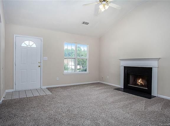 Built in 1995, this Charlotte one-story cul-de-sac home offers a fireplace, gas heating, and a walk-in closet. Upgraded features include fresh interior paint and new carpet in select rooms. Home comes with a 30-day buyback guarantee. Terms and conditions apply.