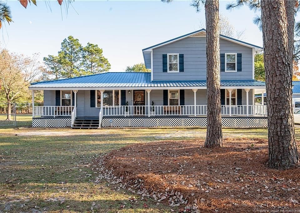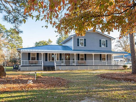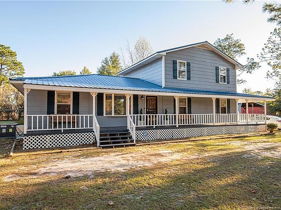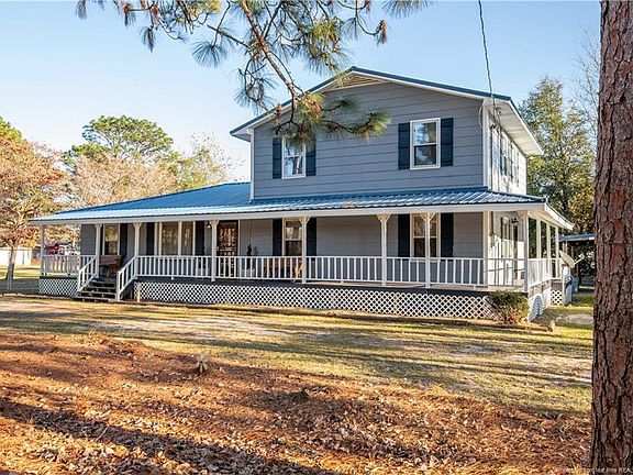 This home is a must see! Beautifully maintained home sits on 1.5 acres. Spacious layout features a covered wrap-around porch and screened in back porch w/celing fan. Tin roof placed approx. 3 years ago. 4-car carport, 2 detached sheds, HVAC approx. 2 years old, and 6 foot fence. Formal living and dining room, carpet less than 2 years old. Split floor plan has 2 bedrooms, den, full bathroom, and formal living spaces on main level. 2nd level has a master suite with sitting area, walk-in closet, and full master bath. Updated "hardwood" tile in kitchen, custom cabinetry, and stainless steel appliances. Breakfast nook and bar seating also in kitchen. Seller is leaving washer and dryer as gifts! Fantastic lot size! USDA eligible- schedule your appointment to view this one before it's too late.
