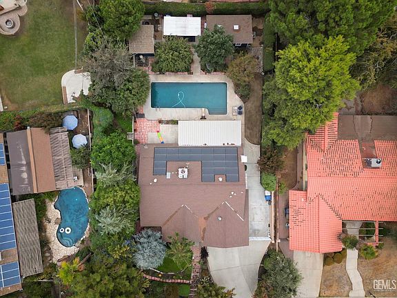 This charming 3-bedroom, 2-bathroom home located at Bakersfield Country Club is a must-see! The property features a variety of upgrades, such as newer electrical and plumbing systems, a recently replaced roof, a sparkling pool, energy-efficient dual-pane windows, and a solar energy system. . Inside, you'll discover elegant crown molding, stylish plantation shutters, and stunning granite countertops in the kitchen. The wood-like vinyl plank flooring adds warmth and charm, perfectly complemented by tasteful colors throughout the home. The backyard offers a serene garden oasis complete with a covered patio, inviting pool, lush greenery, and fruit trees and there's a fantastic accessory unit with electricity-perfect for a studio. RV parking and an additional shed for storage. Don't let this amazing opportunity pass you by!
