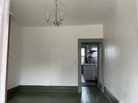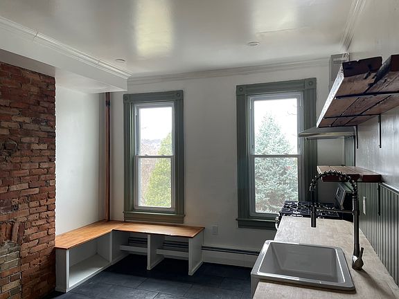 GAS AND WATER INCLUDED IN RENT. Right side of newly renovated duplex for rent in Polish Hill, close to Downtown, Oakland, Bloomfield, the Strip District, and Lawrenceville. Exposed brick in the living room, kitchen and attic as well as refinished hardwood floors in the bathroom, bedroom, and attic. New tile floor and butcher block countertops in the kitchen with brand new appliances and built in seating. Non working fireplace in the bedroom original to the house. Laundry is in the bathroom on the 2nd floor, which also has a clawfoot tub and views of the trees and city. An extra room downstairs in the basement, could be used as an entertainment room, office, bedroom etc. that leads out onto a deck with a privacy fence and a shared backyard with the other townhouse next door. No pets is preferred but open to discussion and the stairs are fairly steep so not ideal for small children. No section 8. Owner pays gas and water/sewage. Tenant responsible for all other utilities. On street parking without a permit. No smoking. Tenant responsible for snow removal.