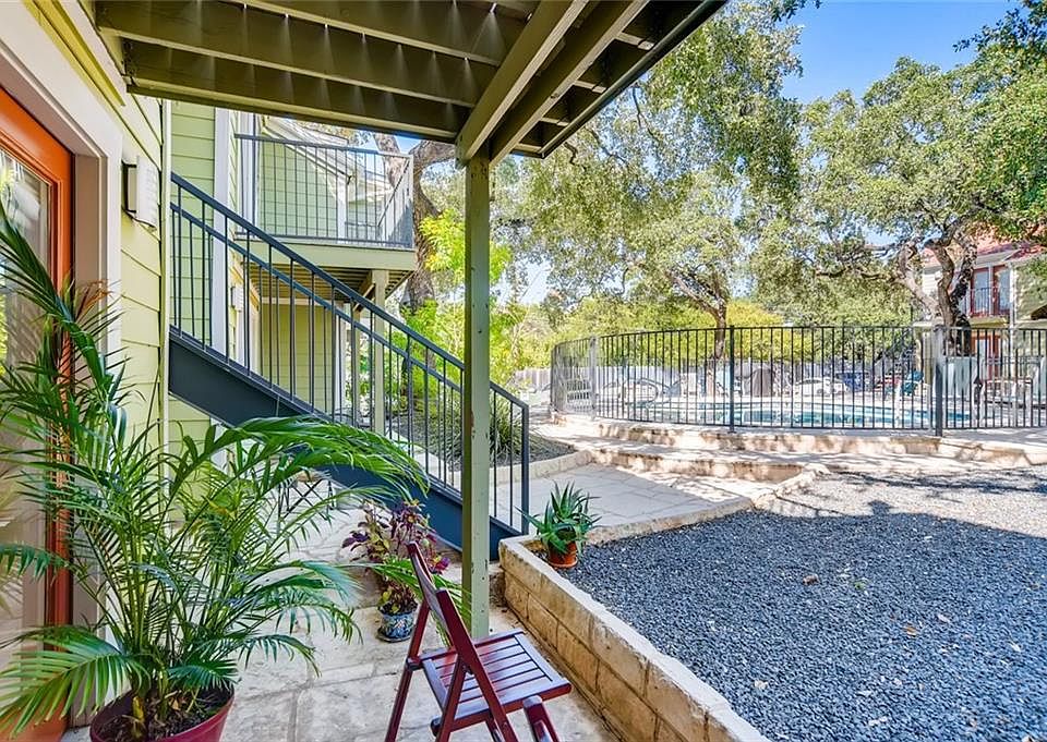 Open floor plan is perfect for entertaining/working from home with a wall of windows overlooking the sparkling pool. Modern finishes-Bamboo flooring, Granite kitchen counters, stylish fresh paint, French door & Stainless Appliances add to the clean & classic look. GOOGLE FIBER, gas cooking, tile bath surround & flooring, stacked washer/dryer, great natural light, canned lights, walk-in closets &generous patio. HOA covers Water, Gas, Hot Water Heaters, Exterior Maintenance, Parking Lot, Mail Boxes & Pool.Restrictions: Yes