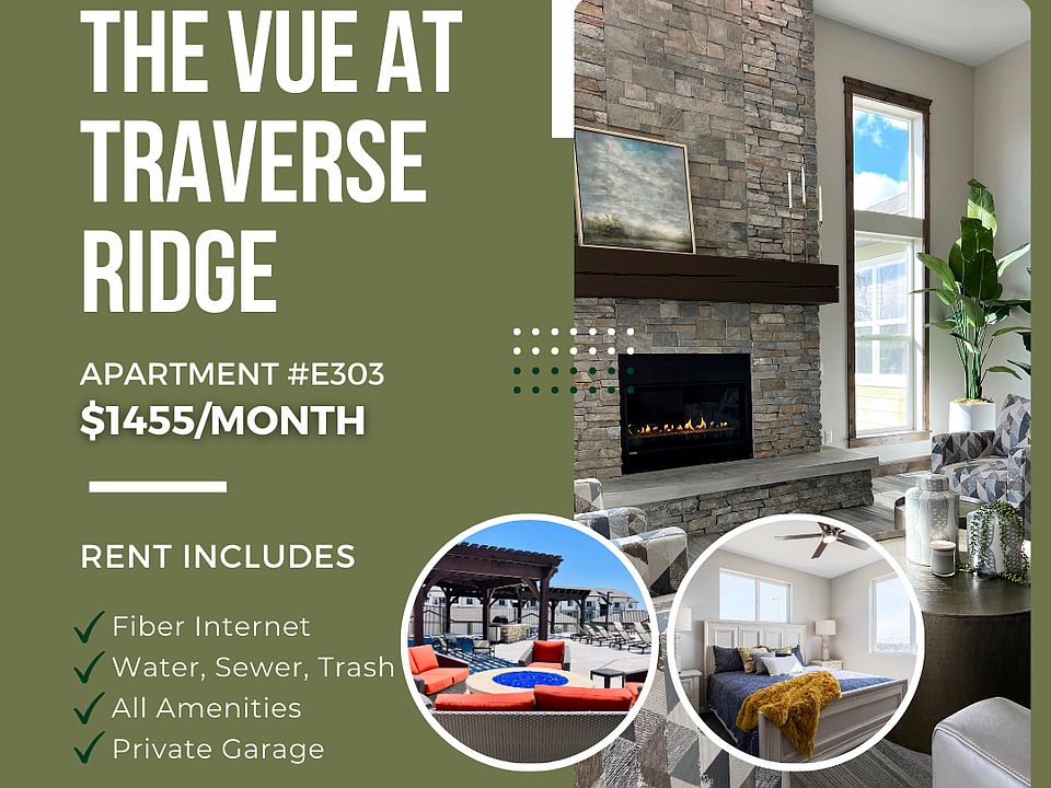 Welcome to The Vue at Traverse Ridge - A premier community Located in the heart of Silicon Slope! Just minutes away from Texas Instruments, Adobe, Microsoft, and other big names in the tech space, The Vue is the Ideal place to call home. Its proximity to the Outlets at Traverse, Thanksgiving Point, Cabelas, Harmons Grocery, and the other many attractions of Lehi, as well as easy access to I-15 and the Front Runner station makes this the definition of convenient living. All Inclusive Rent Price! NO hidden fees! Get your own garage, uncapped fiber Wifi, smart home system, and certain utilities all bundled into one price. Be a part of Utah's best rent to own program and start your journey to being a home buyer. In partnership with Perry Homes, get a percentage of your rent applied towards owning a new home at no additional cost! Now renting 1- and 2-bedroom apartment homes with panoramic views of the Traverse and Wasatch Mountains and Utah County. Experience more with a spacious, contemporary apartment home, awe-inspiring views, and luxurious amenities. Life gets better with a view. *Contact leasing office for details on pricing and specials. Rent includes water, sewer, trash, internet, in-unit washer and dryer, and a garage. No additional monthly fees. Application Cost: $200 Base Security Deposit (Refundable) $200 Administrative Fee (One-Time Fee) Cost Due At Move-In: Pro-Rated Rent Additional Deposits (If Applicable) Pet Fees/Deposits (If Applicable) Lease Terms: 2-12 months or Month-to-Month Short Term Lease $100 Premium Applies to All Leases Shorter Than 6 Months