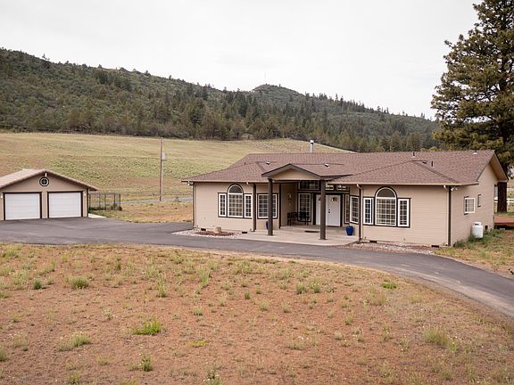 Starlight, starbright, so close and yet no city lights. Only 2.5 miles to Main St, yet all the peace and quiet of a mountain retreat. Your next home is just above downtown, circular driveway, detached garage and custom canine kennel. One Level, three bedrooms all with ensuite baths and walk-in closets surround a large open living space flanked by a custom kitchen, dining area, laundry and half bath. Kitchen cabinets by Chuy's with leather finished quartz counter tops and a mahogany island. Vaulted great room with 10 ft ceilings in the rest of the house. French doors throughout including onto the rear deck. We started some trees and left plenty of room on the level two acres for your garden, bocce court, or ???????? Easy to show and owners can be flexible with close.