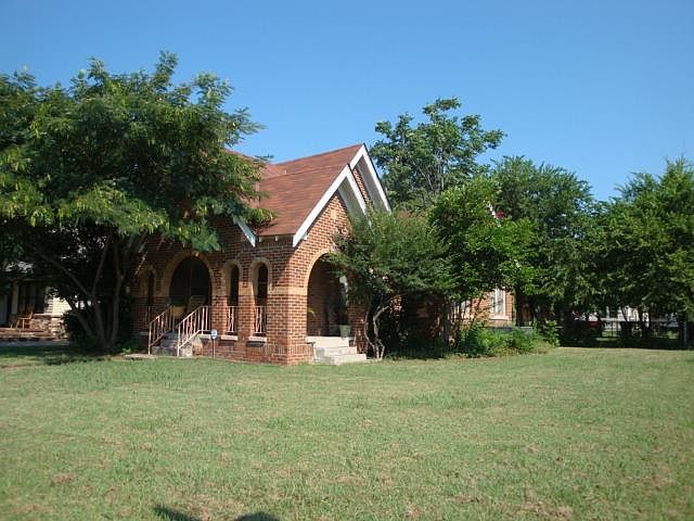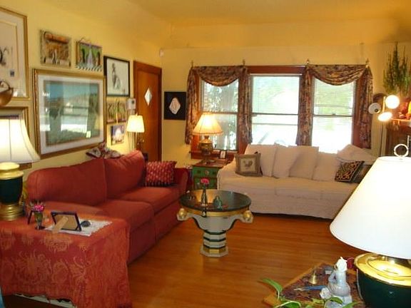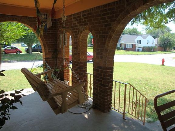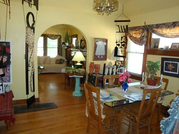 Owned by artist and it shows! Even without the art displays, this home has great architectural flair and design. Upon entrance the wall is a beautiful mock fireplace with built-in display shelves. Original hardwood floors in most areas. Archway room separation in living and dining. Large dining area opens to living and kitchen. All bedrooms are nice with ceiling fans. Front bedroom has two walls of windows for TONS of natural light. Other bedrooms are neutral or with accent wall. New paint throughout. Newer HVAC and roof! And new insulation and plumbing lines replaced. Electric upgraded for new tankless h20 tank. Great corner lot with large backyard, fence and beautiful mature trees for shade. Detached garage with its own entrance. Porch is framed with several arched openings facing South and East.