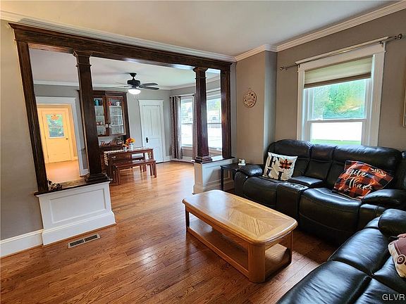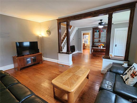 Open House Sunday, 11am-1pm! Beautiful Saucon Valley home, fully updated and completely move in ready! This charming 3-bedroom 1 bathroom home includes original woodwork, hard wood floors, custom built in cabinetry, 9' ceilings, crown molding, and decorative columns. The modern, open lay-out has great flow from living room, dining room and kitchen! The outside space is perfect for entertaining which features a deck, large fully fenced yard, 2 sheds and hot tub! Large parking pad with plenty of room for 4 cars. Recent updates include new roof, new dishwasher, new hardwood flooring, new windows, updated light fixtures, new furnace, new gutters, re-stained woodwork, and all new plumbing lines. Located just minutes from the Promenade Shops, fine dining, entertainment, festivals, and close to all major commuter routes. Don't miss this one!