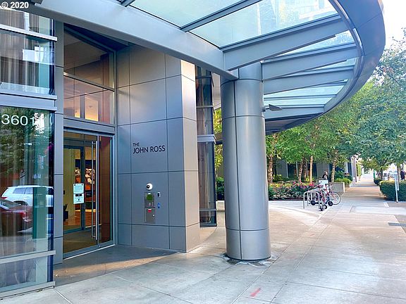 Check out the amazing river views from this South facing condo with covered private deck and deeded secured parking space. Make this your new live/work office view! 24/7 concierge services, secured bike storage, efficient floor plan with plenty of storage. Hardwoods, stainless appliances, W/D hookup, amenity room avail for use + rooftop BBQ area with garden courtyard. Steps to Willamette River, OHSU tram, streetcar, MAX, and lively restaurants, parks and shops. See video tour. No rental cap.