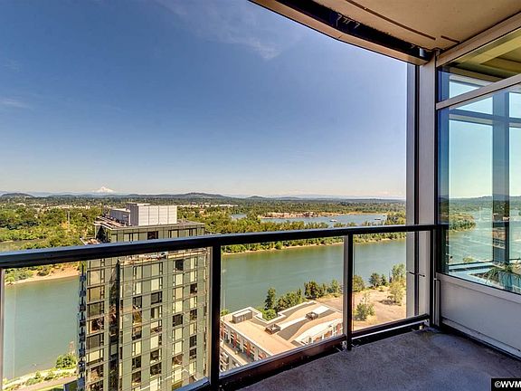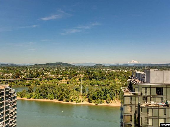 Penthouse. Exceptional John Ross unit with dramatic Willamette River and Mt. Hood views from nearly every room and deck. Thesensible layout and modern finishes compliment a high-end lifestyle. Amenities include 24hr concierge, gym, garden courtyard, two secure parking spots, storage unit, and more. One block from everything: park, river, shops and restaurants. Live, play, and work in comfort and convenience. Click Vtour link for video.