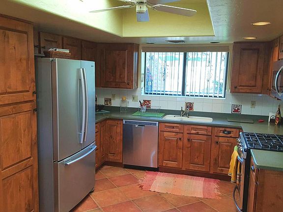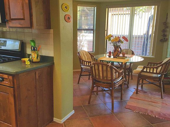 Beautiful expanded and remodeled Vera Cruz floor plan with breakfast nook addition adjacent to the kitchen. Southwest colors throughout with tiled floors in all the right places. Knotty Alderwood kitchen cabinets and corian countertops with stainless appliances,and gas stove. The wall between the kitchen and living room has been removed and replaced with an island for a very open floor plan. Master bath was modified for a all tiled walk in shower Gas beehive fireplace in the living room ,a wet bar for entertaining guests, wrap around patio,water feature and panoramic mountain views of the Santa Ritas for your enjoyment. Furniture inventory by SBOS