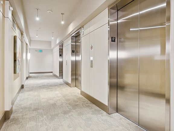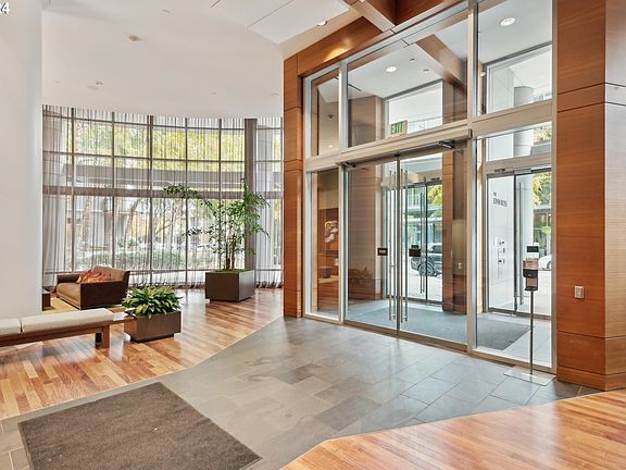 Stylish living in this spacious John Ross condominium. This NE corner unit has walls of windows with sweeping City, River & Mountain views from every room. Open great room floor plan with wood floors and high ceilings offers generous spaces for everyday living and entertaining. Sleek Chefs kitchen with premium stainless appliances and island is well designed and has loads of storage. Luxurious Owners suite has private bath, enormous walk-in closet...and, of course, a stunning view of the Tillicum Crossing Bridge! Home is complete with deeded parking for two cars and a separate storage unit. John Ross Condos include full time concierge service and secure entry. Other amenities include ground level plaza and 5th floor Community room and outdoor rooftop garden complete with gas BBQ grills. Excellent South waterfront location is steps away from the Portland Streetcar and all of the fun shops and restaurants. Enjoy the waterfront esplanade trail one block away. Walk/tram to work at OHSU!