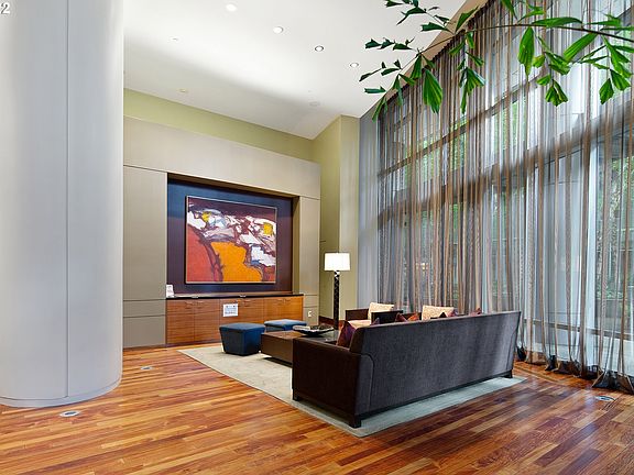 Fabulous, South facing unit that gives you the entire view of the Willamette River w/exceptional views from the 23rd floor! Light, Bright, & Open modern floorplan that is tucked away at the end of the hall for added privacy! Gorgeous floor-to-ceiling windows, Custom closet built-ins, wood floors throughout, a covered deck w/amazing views and much more. Large indoor storage unit and deeded parking space. Also has a event/party room as well as open-air deck/lounge space with BBQs! Must see!