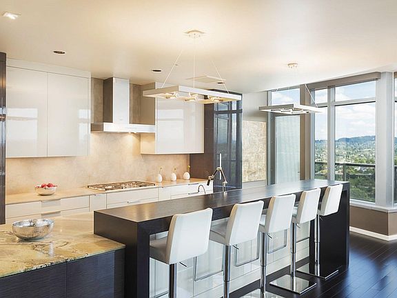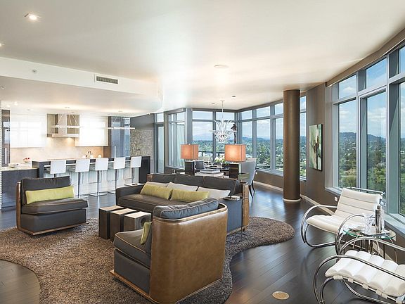 Exceptional John Ross Penthouse! This one-of-a-kind home has dramatic Willamette River & Mt. Hood views & features a hi-tech modern flair mixed with a sophisticated warm & welcoming palate. The uber high-end finishes in this home set it apart from any other Penthouse in PDX. Featuring: Incredible custom stone, 2 fireplaces, smart home tech, steam shower, gym, custom finishes throughout, and so much more. This spectacular home is a 10! This property is available as an "executive short term rental" for periods of 30 days or longer. Perfect for traveling OHSU doctors, business professionals, etc. Lease terms negotiable. $6000/month, 6 or 12 month lease. First, last and deposit of 1 months rent due on move in ($18,000) no smokers, pets negotiable. Garaged parking for two vehicles included. All utilities included, high speed internet and cable TV.
