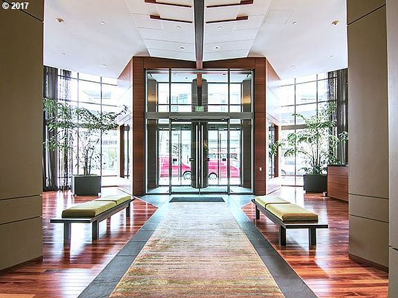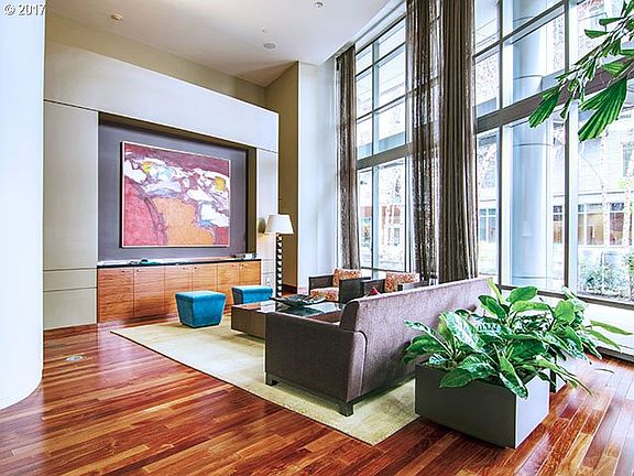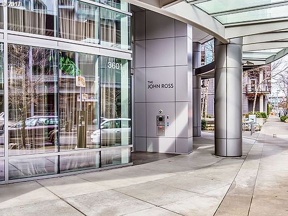 Cosmopolitan living in this true one bed, one bath in the John Ross. Open living space, expansive windows, rounded pillar, nooks, brilliant hardwoods, balcony and Views! Kitchen with island, quartz counters and stainless steel appliances. Master with French doors to closet. Utility room. AC! Deeded parking and storage. 24 hour concierge. In the heart of South Waterfront with restaurants, parks, river, trails, street car and OHSU tram.