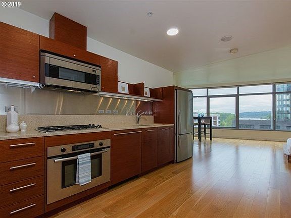 Perfect studio for minimalist full time living. With pleasant East side exposure and a view to the river, this unit is move in ready. 24/7 concierge service, deeded parking included at $299,000, resident lounge with kitchen, outdoor BBQ area, 5th floor garden deck, close to 2 acre park & river trail, Leed Certified Green Efficient, 1 block to street car. Shared bicycle storage areas. Vibrant South Waterfront living. Short Rentals OK.