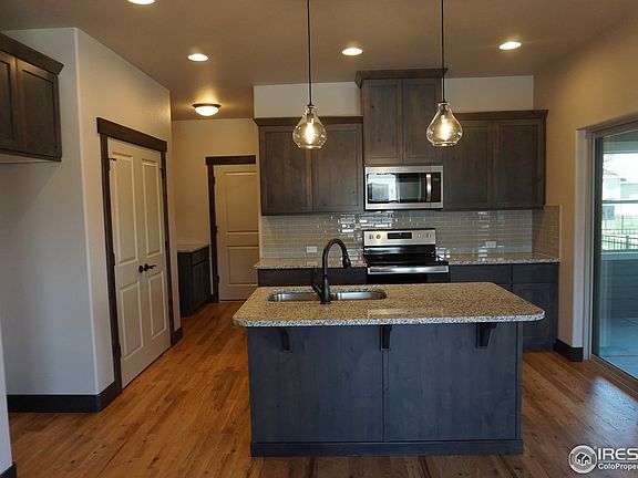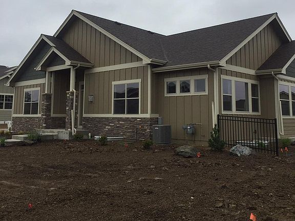 The perfect "down-sized" ranch plan! Upscale finishes incl. slab granite, tile backsplash, SS appliances & wood floors throughout great room, kitchen, dining & hallway. Open floor plan w/beautiful corner gas fireplace in the great room. Lg.MB & bathroom w/granite counter tops, poured pan tile shower with bench. Walk-in closet has oodles of storage. Enjoy the wonderful Colorado weather on lg. covered patio (13' x 19'). 25' Deep garage. Homes are attached w/only one shared wall in the garage.