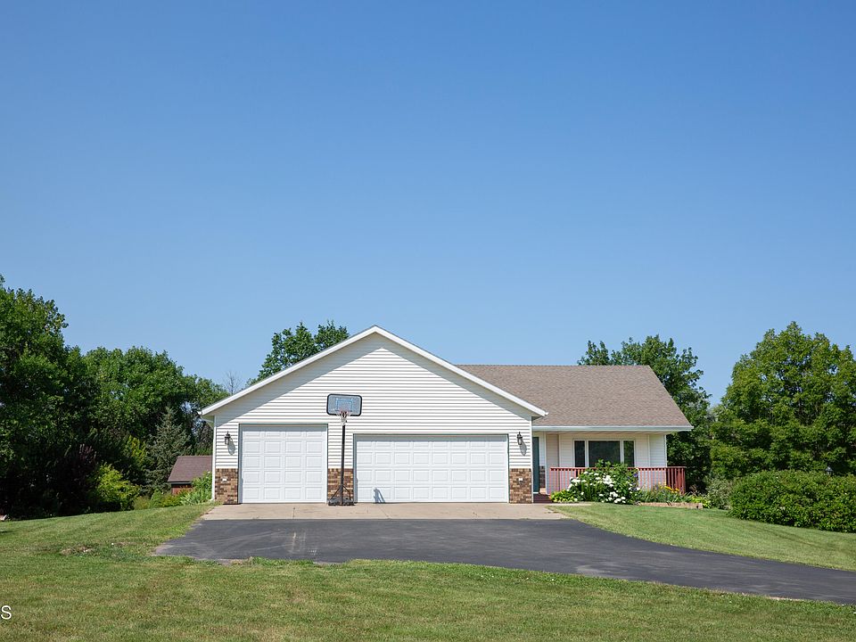 If you want quiet and space, here is your home. Just south of Bismarck on 2.66 acres of land surrounded by mature trees and space to enjoy. The main floor has a large living area, dining room and kitchen with a large deck of off the dining room for relaxing outdoor living. The kitchen has cherry cabinets and a large island for added prepping space. The kitchen and dining room are finished with beautiful hardwood floors. The upper level has a large master suite and two other spacious bedrooms and a full bath. The lower level has a large family room, laundry room and gas fireplace. There is an area in the lowest level that is unfinished for you to make into another bedroom or office or another entertainment room. The attached three stall garage has plenty of space and if you need more garage space, there is a detached oversized two stall garage.