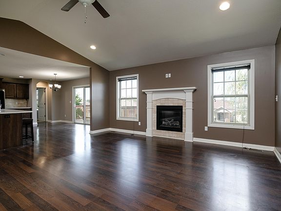 Like-new 4BR, 3BA walk-out ranch in Vanderveen Crossing with a split-bedroom design. This home features an open floor plan accented by fresh paint!. The living room boasts a vaulted ceiling, gas fireplace, and easy flow into the kitchen, which offers stainless steel appliances, bar seating, a smooth-top range, pantry, and a spacious breakfast room with deck access.