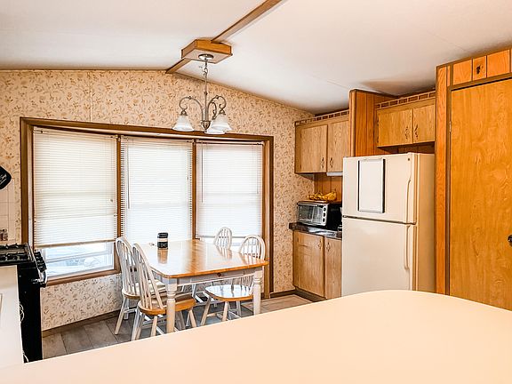 Updated nice 2 bedroom with renovations throughout. An empty lot view from deck and a small parking lot right behind the home. The kitchen has a bay window for lots of natural light. Nice covered porch with a shed and this mobile home is complete. New flooring 2022 -Furnace and air condition June 2018 - Water heater 2020 - Washer and Dryer -2018 -Windows were replaced prior to 2016. CALL TODAY!