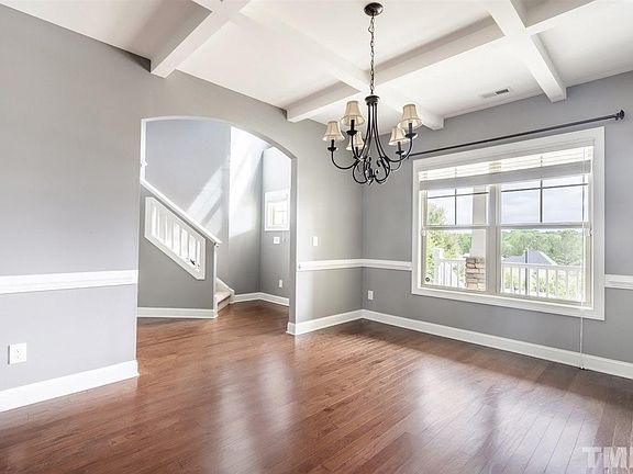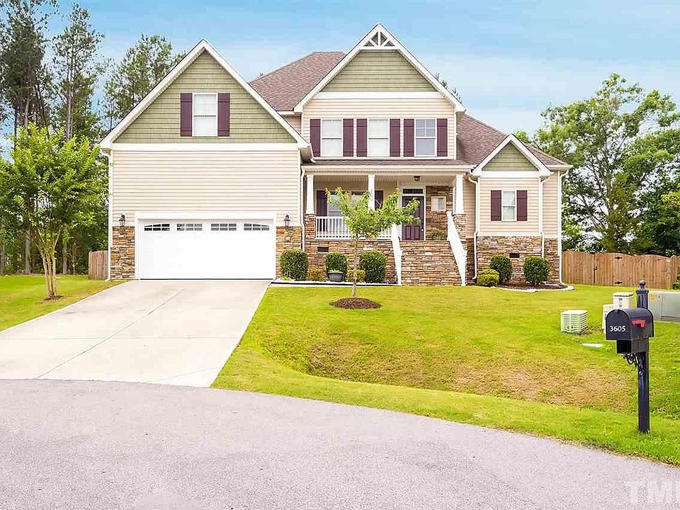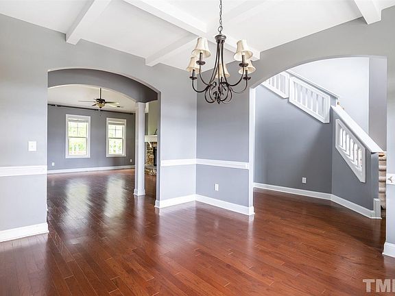 Elegant and Beautiful 4 BDRM 3.5 BATH home at the end of a Cul-de-Sac in coveted Old Milburnie crossing. This home features hardwood floors in living areas, coffered ceiling in dining room, Granite counters and SS appliances. 1st floor Master BDRM, Stone accented gas log fireplace in family room, huge bonus room and 3 large BRMS upstairs. The back deck provides a great spot for entertaining with a stone fire pit in a fenced yard backing up to beautiful trees. Minutes to Triangle Town Ctr shopping.