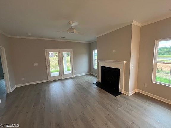 Completed Now! Celebrate the holidays here! New Clemmons Townhomes! Only 26 homes total, Both 1 story and 1.5 story homes available. Surrounded by mature trees, common area and sidewalks. 9 ft ceilings on main level, open floor plan, no steps from garage, zero entry oversized primary bath shower and more. This home features laminate hardwood floor and crown molding in all living areas & primary bedroom. Upgraded tile floor in both bathrooms and laundry room. Gourmet kitchen with upgraded cabinets, quartz countertops and stainless steel appliances. Great room has beautifully crafted coffered ceiling. Atrium doors from great room lead to rear covered porch. Spacious primary bedroom with 2 walk in closets Primary bath has upgraded tile shower, dual vanity and comfort height toilet. Adjoining door to laundry room from primary bath. Great drop zone area at garage walk in door. Ample natural light throughout. See mood board for colors of finishes selected. Landscaping by HOA.