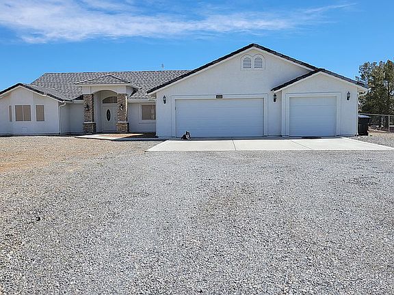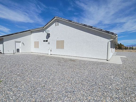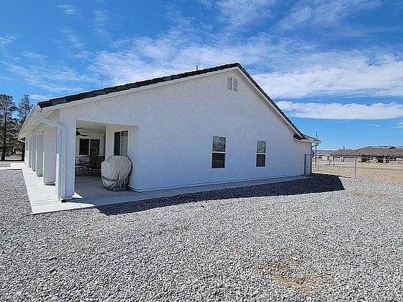 Take a look at this spacious 2444sf 3-bedroom 2 bath home sitting on just over 1 acre of land in Pahrump NV. There are 12’ vaulted ceilings throughout this home. The large kitchen has SS appliances, refrigerator w dual icemakers, Bosch dishwasher, and if you prefer cooking w gas you are going to love the dual fuel range w propane cooktop & elect convection oven. Granite counter tops, oak shaker cabinets, and more! Enjoy dining at the breakfast bar or at the table in your breakfast nook while enjoying the beautiful view of the mountains surrounding the Pahrump Valley. The butler’s pantry just off the formal dining room provides extra storage. This split concept floor plan features a guest BR w private entrance to the common bath, the 3rd room serves as an additional BR or office space. The Master Suite is huge with a large walk-in closet, & the oversized bathroom has his and hers sinks on opposite sides of the bathroom providing plenty of space for both of you. A 6’ jetted tub, large walk-in shower and private water-closet complete the master suite. This home features a game room complete with pool table. Smart thermostats, dual HVAC units, 400-amp electrical service, low E windows w solar screens, a finished 3 car garage & storage rm. Home is prewired for security system & surround sound. The large patio provides the perfect view of Mount Charleston. Back yard is fenced w 10' gate. Horses ok. All kitchen appliances plus Wshr, dryer, deep freezer stay w home. Some furnishings negotiable.