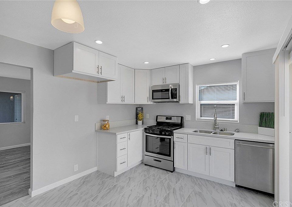 WELCOME HOME!! Beautifully remodeled home in a great West side family neighborhood. You will find a very modern chefs kitchen with room for family dinning. All white cabinets, QUARTZ counters and stainless steel appliances!! All modern gray flooring throughout, NO CARPET!! Bathroom is all new with designer tile, vanity and fixtures. Both bedrooms have large closets too!! ALL NEW DUAL PANE WINDOWS!! Recessed lighting and two tone paint makes it very cozy and modern. Two car garage with drywall could be a great bonus room!! Extra large corner lot with plenty or room to expand.