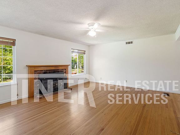 This home boasts three spacious bedrooms, including a primary suite with a large closet and private bathroom, and two full bathrooms in total. The kitchen is a cook's dream, equipped with a microwave, dishwasher, garbage disposal, and an electric range. The laminate countertops add a touch of elegance to the space. The living area is accentuated by a cozy fireplace and hardwood floors, while dual pane windows ensure energy efficiency. The home also features a covered patio, perfect for outdoor relaxation, and a generous backyard. For those with recreational vehicles, the property offers RV access. The home is also pet-friendly, with a reasonable pet rent policy.