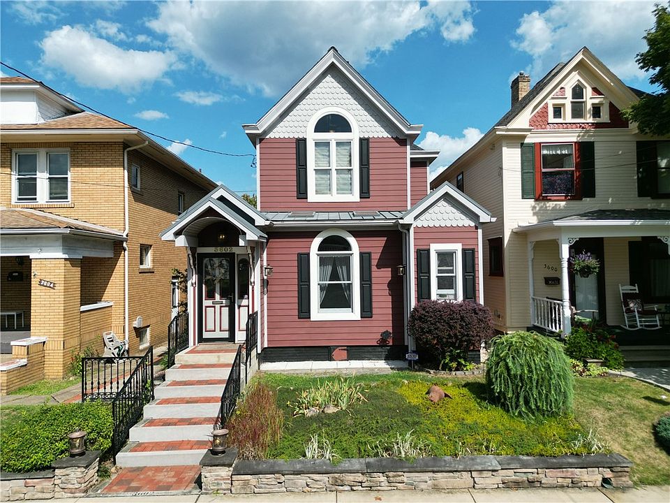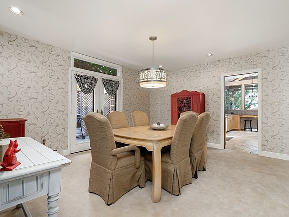 Exquisitely charming, this home will capture your heart in no time! The living & dining rooms share an open floor plan that provides the perfect area for entertaining. A wood burning stove warms this area keeping you toasty warm during the winter months. If cooking is your passion you will simply flip over this kitchen! The dramatic angles of the rear windows & vaulted ceilings are stunning. Access the deck from the kitchen or French doors off the dining room. Relax on the covered side porch that wraps around the back of the home providing several peaceful places to enjoy the outdoors & Koi pond. This yard definitely will become your meditation garden. While outside be sure to explore the two-car detached garage with extended height ceiling. On the second level there are two large bedrooms. To say the hall bath is "Spa-like" would be a huge understatement. It features heated ceramic tile flooring, a jetted tub, and a huge walk-in rain shower complete with a shower wall jet system.
