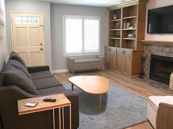 Furnished Spacious 2BR/2BA Single Story Condo Carmel Valley Single-level coastal condo in highly desirable Carmel Valley. This home lives like a townhouse with no upstairs neighbors and a private fenced patio. Excellent location just minutes from the beach and walking distance to One Paseo and Del Mar Highlands Town Center dining and shopping. Short drive to the Del Mar Fairgrounds, Torrey Pines Golf Course, and less then 4 miles from the beach! Property Highlights 2 Bedrooms / 2 Full Bathrooms Fully furnished & move-in ready Open floor plan with plenty of natural light Master bedroom: queen bed, ensuite bath with shower & tub Second bedroom: daybed with trundle + desk/workspace Additional desk area in kitchen/dining Family room with large Roku TV Fully equipped kitchen with ample counter space & modern appliances Washer & dryer in unit Central A/C Community Amenities Pool, spa, and tennis courts Private fenced patio Ground-level unit (no upstairs neighbors) Walking trails throughout neighborhood Parking Water and internet are included in rent. Renter pays for gas and electric.