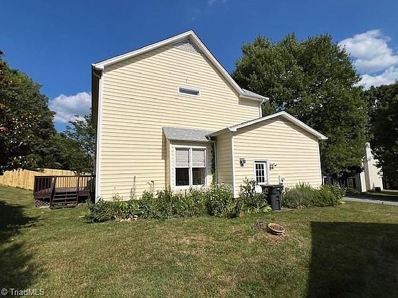 Check out this move in ready 3 bedroom with 2.5 baths. The main floor has beautiful Hardwood floors in the Living Room and Dining room with beautiful Window Shutters the Fireplace adds that extra ambiance. A colorful kitchen with Breakfast area with the refrigerator and washer /dryer are to remain. Enjoy relaxing on the back deck off the kitchen with a beverage of choice. The Primary bedroom has a large bath with garden tub and separate shower. Home has a new Heat/AC system in 2023. Also, a new roof in 2023. There is a floored walk-in attic storage area in a bedroom. Out build is to remain with property. Home is conveniently located near I-840, I-73, NC-68 and the airport.
