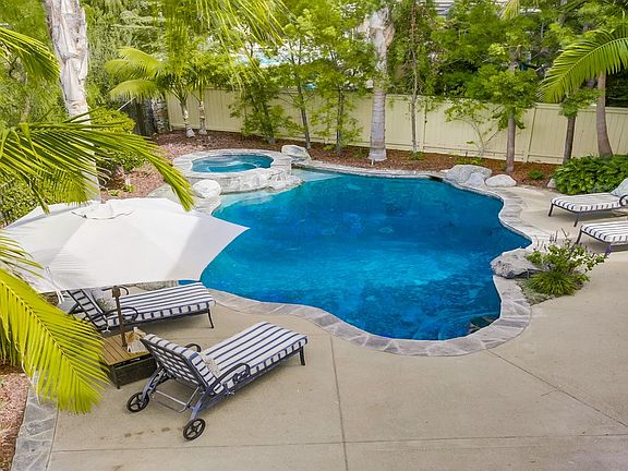 Stunning 5 bed 4.5 bath home in the highly sought after community of The Ranch in Carlsbad. Perfectly situated in the middle of a culdesac, this home sits on a half acre lot with a spectacular entertainers yard w/ a pool & spa, fireplace & firepit & plenty of grass for kids to play. Beautifully remodeled gourmet kitchen w/ enormous quartz island & ss appliances. Flooded w/ light this open concept living has lrg. family room open to the kitchen. Guest bed on 1st floor. A/C, 3 car garage, OPE elementary