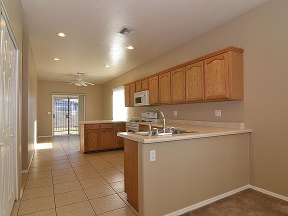 Beautifully remodeled home. Ceramic earth tone tile. Perfect open floor plan for light filled interior living. New upgraded carpet in bedrooms and living areas. New custom interior paint. Oak cabinets in kitchen. White appliances. Two car garage. Large back yard. Covered patio. Show your clients this contemporary home. It shows beautifully.