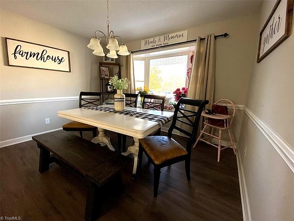 Are you looking for a one level country living but still convenient to everything! Look no further than this updated 3 bedroom, 2 full bathroom home located in Wallburg. Lots of updates! Rocking chair front porch. Oversize living room with whitewashed brick gas log fireplace and vaulted ceilings. Updated light fixtures. New laminate hardwood flooring and carpet. Updated kitchen with all stainless steel appliances & granite counter tops. Enjoy your new dining room area with a large bay window over looking the front half of the property. Master suite is massive and includes a walk in closet, jetted tub, tile shower & separated vanity for privacy. Private backyard secluded by mature trees, back deck and separate patio is great for entertaining. 2 car attached garage with over head attic that's great for storage. New HVAC! Schedule your showing today!