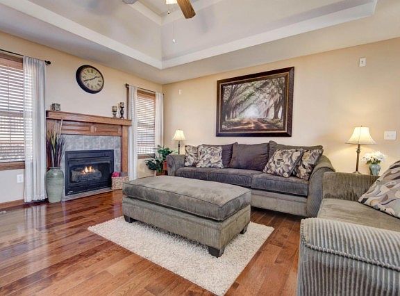Amazing home in a fantastic location! Easy access to 65 HWY, shopping, large retail, and grocery stores. Great curb appeal! Outside you will love the arched windows, enormous deck, and easy to keep landscaping. Inside you will love the hardwood floors, vaulted ceiling, open formal dining, split floor plan, and excellent flow. The kitchen has great cabinets and countertop space, breakfast bar, and pantry. The master bedroom is spacious and the master bathroom has a large walk in closet, double vanity, walk-in shower, and jetted tub. This is a must see! Includes one year HSA Home Warranty.