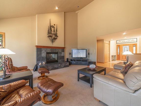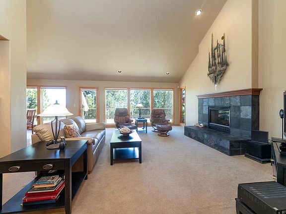 This Awbrey Glen beauty built by Sun Forest Construction features 2906 sf of living space with high ceilings, generous windows, gas see-through fireplace, gourmet kitchen w/ granite counters, high bar seating, stainless appliances, spice cabinet, and center island with loads of cabinetry.The 3 spacious bedrooms are en-suite. The master suite features a walk-in closet with built-ins, tiled shower and a soaking tub. All bedrooms are on the main level. The expansive deck is perfect for entertaining with views of Smith Rock. The oversized 3 car garage has a workshop and lots of shelving. The ample daylight basement features 2 flex rooms, full bathroom and an additional large storage room. One room includes a beautiful custom built Murphy bed perfect for guests!Awbrey Glen is a cherished, gated community with low HOAs.