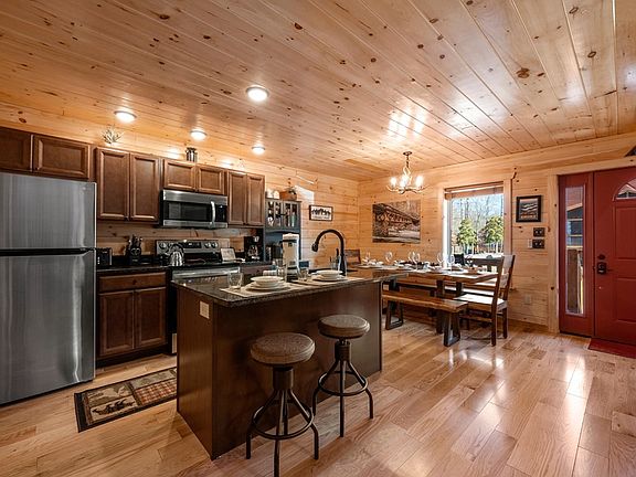 Awesome opportunity to own a 4 bedroom log cabin in Gatlinburg that is under a year old. This beautiful cabin is located in White Oak Lodge & Resort and offers all the amenities that guest have come to expect. Stack stone fireplaces, granite countertops, Stainless steel appliances, large bedrooms, large flat screen TVs, recreation/game rooms, and much more. Cabin is situated on flat ground and has an open floor plan with cathedral ceilings in the living room with floor to ceiling stack stone fireplace, combination dining/kitchen area, and two bedrooms with en suite bathrooms on the main level. Both bedrooms provide access to the rear deck where you will find a private screened in area with outdoor furniture and the hot tub. The upper level has a large loft with multiple arcade game consoles, a jukebox, and 75" smart TV. The upstairs area also features the two additional bedrooms with en suite bathrooms. The White Oak Lodge Resort HOA offers all the amenities including cable tv, internet, gas, clubhouse, community pool, tennis courts, and more. Property has been on rental for just a few months but has projections of 95-110k gross. Cabin is completely turn key and ready to go for the summer rental season.
